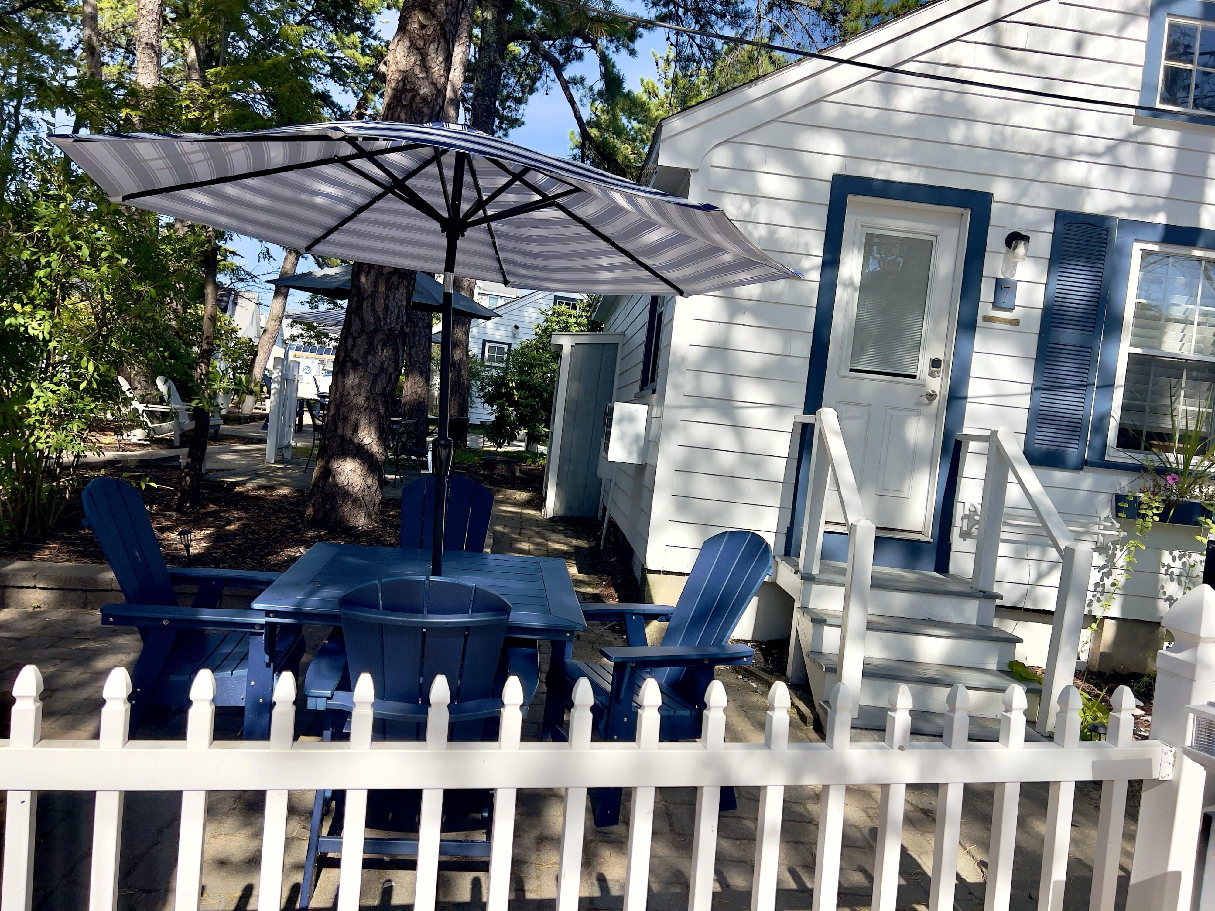 This quaint two-bedroom cottage sleeps up to six people and offers an open kitchen, dining, living room area with cathedral ceiling. There are two roomy bedrooms, one with a queen bed and one with two bunk beds. The bathroom offers his & her sinks, shower and whirlpool tub. Kitchen amenities include 2 hot plates.