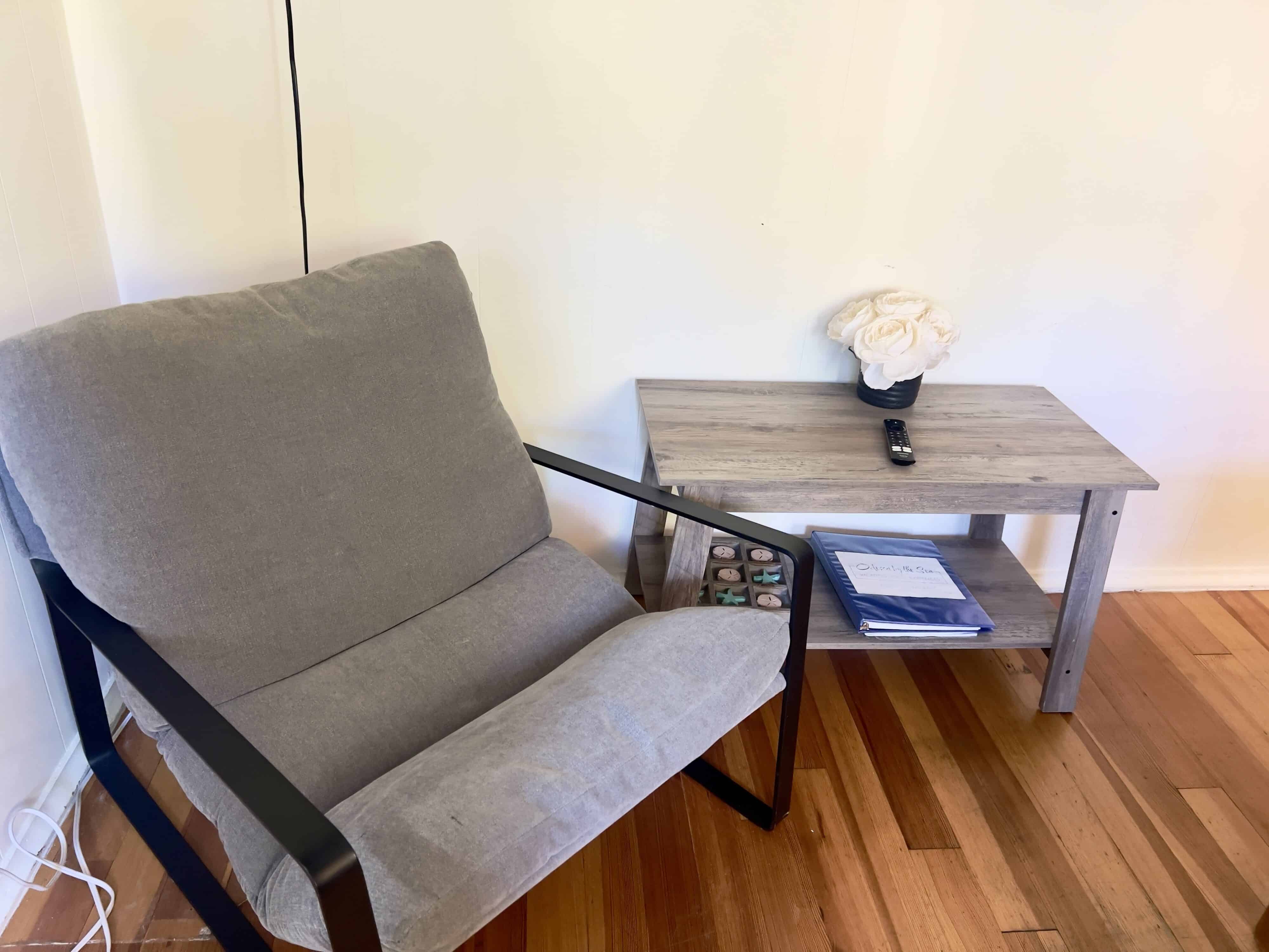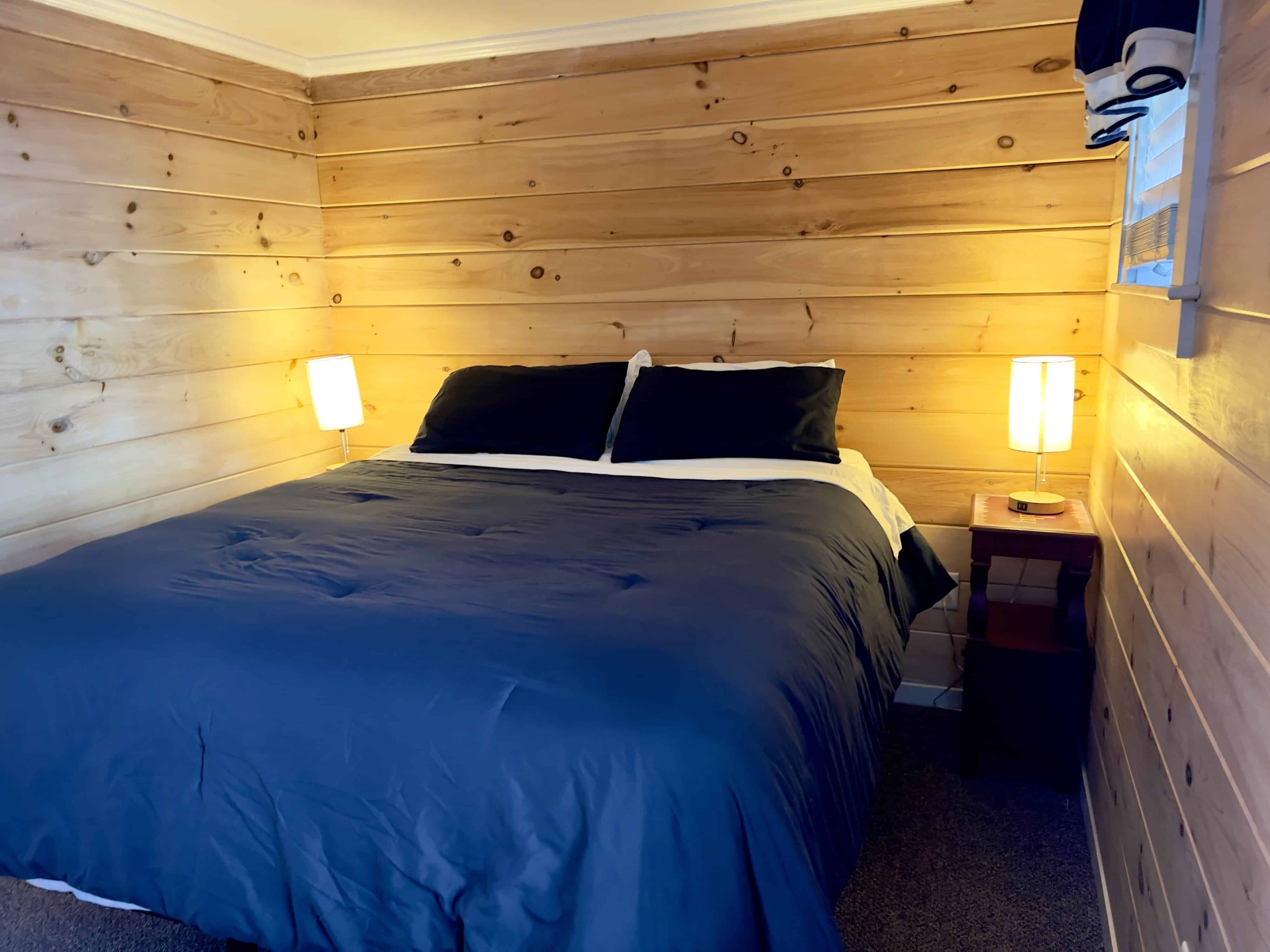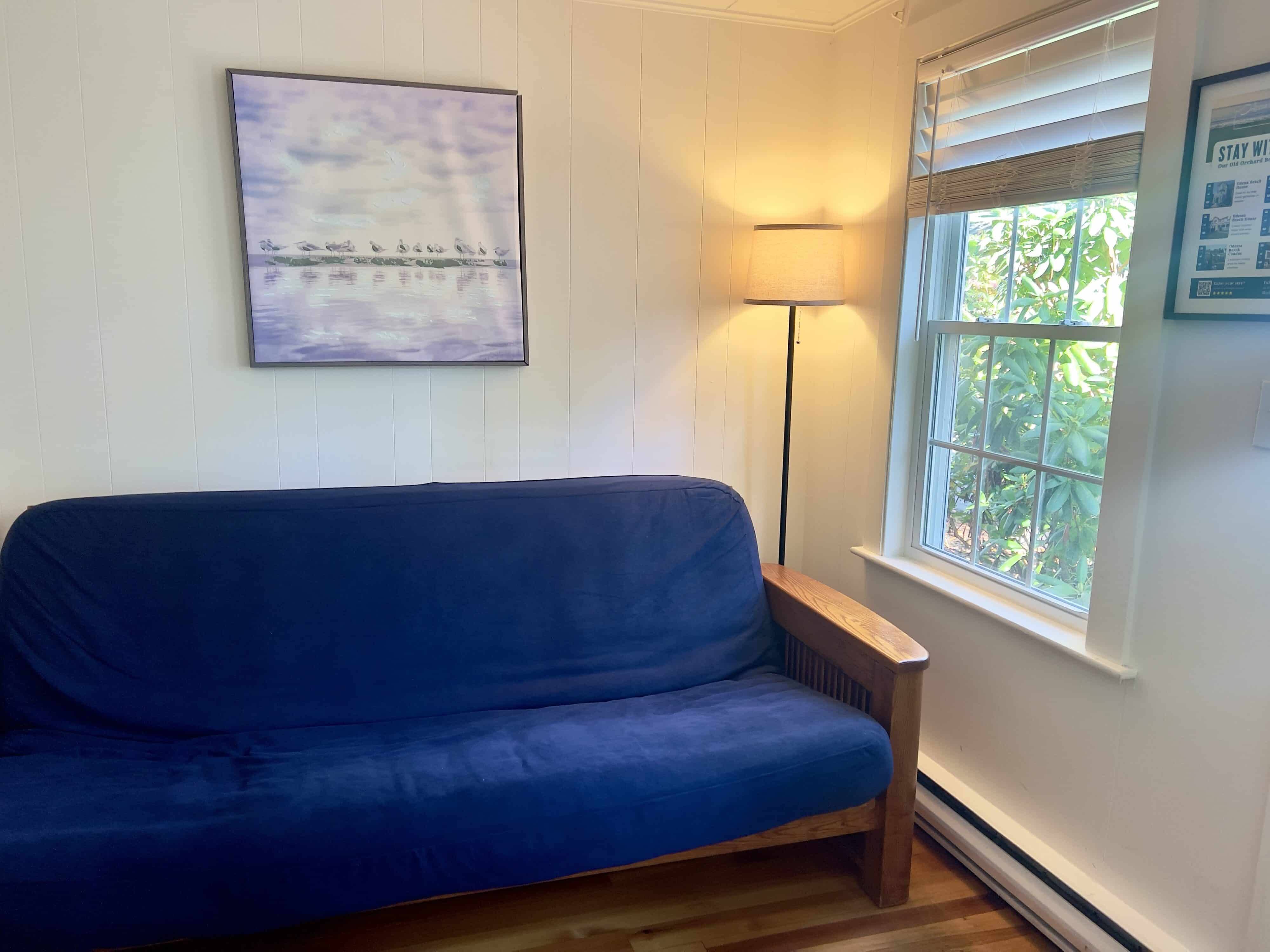 This cozy cottage has a double futon in the living room, and a queen size bed in the bedroom. It sleeps up to 4 people. The fully equipped kitchenette includes a microwave, fridge, 2 hot plates, coffee maker, toaster, and dining area. The bathroom has a tub/shower combo.