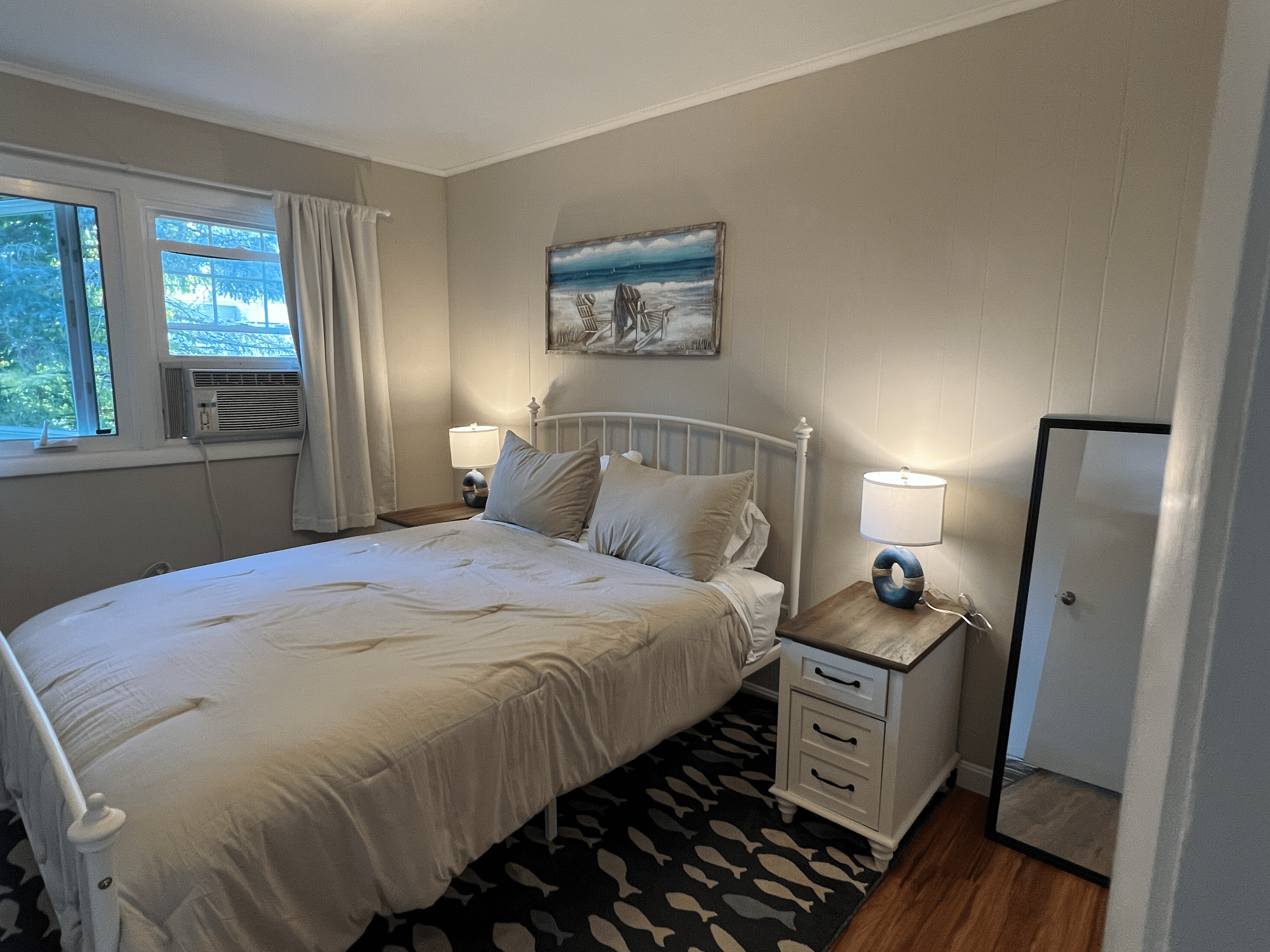 Relax and unwind at this peaceful beach retreat, just 2 blocks from the beach. Nestled on a quiet cul-de-sac, this charming 4-bedroom, 4-bathroom home offers privacy, brand-new furnishings, and plenty of outdoor space for games, BBQs, or simply lounging in Adirondack chairs. Inside, you’ll find a cozy living room with a spacious couch and large smart TV, a fully equipped kitchen with modern appliances, and four comfortable queen bedrooms, each with ample storage and convenient bedside outlets. For added convenience, we provide all linens, bath and beach towels, beach chairs, a washer/dryer for extended stays, and off-street parking for up to 4 vehicles. With an unbeatable location and thoughtful amenities, this rare find is perfect for your beach getaway! Sleeps up to 8. Available year round!