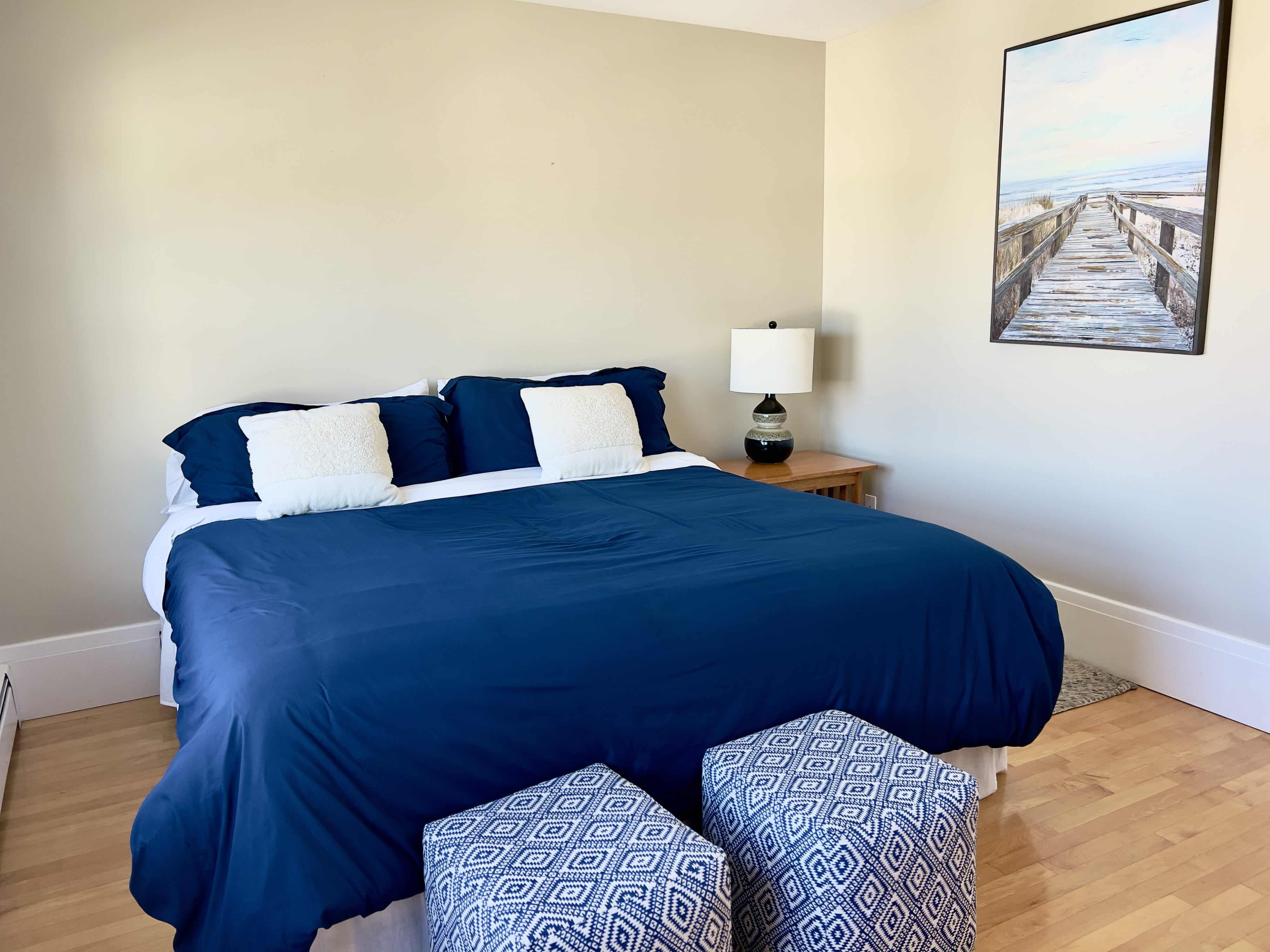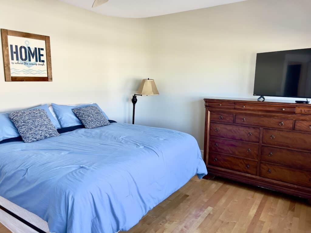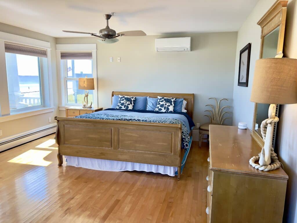 The 2nd floor has 3 bedrooms. The master bedroom with king bed is the one to fight over as it includes a private ocean facing deck. The view is so expansive you can sit in bed and watch the sunrise. The ensuite bath has a tub and separate glass shower.