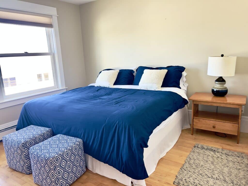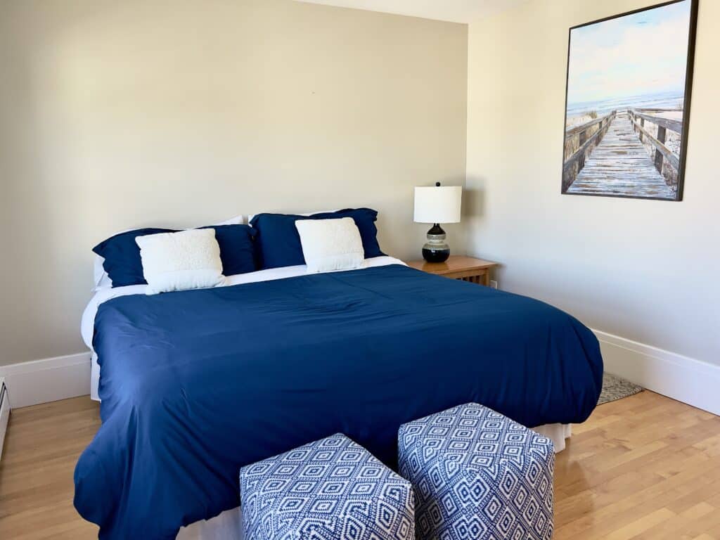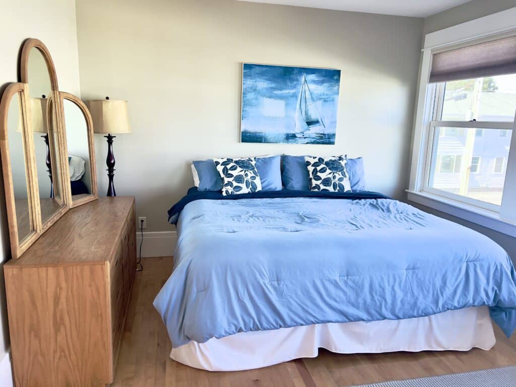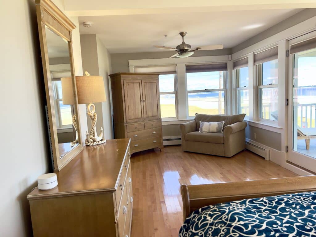 September 2022. 5/5 The master bedroom (and all the bedrooms in the main house) are located on the 2nd floor. But if you rent the whole house there is a connector door on the 3rd floor which leads directly to the bedrooms on the apt side. This is great for anyone who stays up late, while the early sleepers can use the rooms on the 2nd floor. The master bedroom is under the main living area and has it’s own balcony that opens out to the ocean – we stayed in this room and it was heaven! It’s an easy walk to the pier and the many shops and restaurants (about 1/2 -3/4 mi).… This was a real gem for our family/friend get together! We’ll look forward to booking again next year.