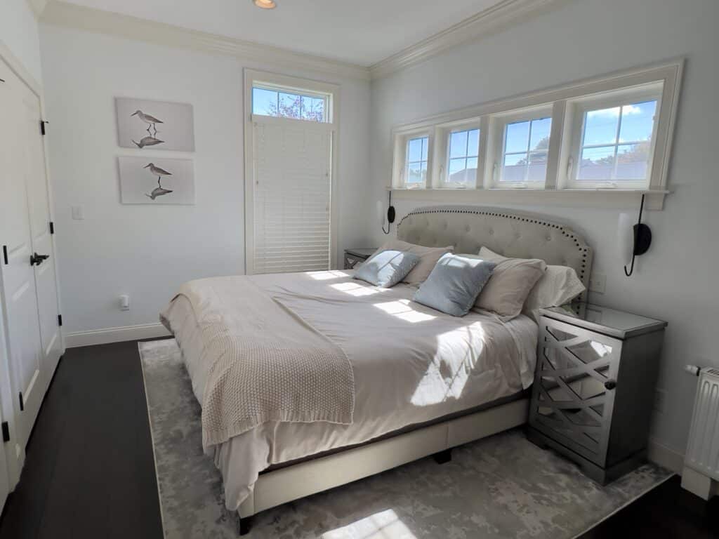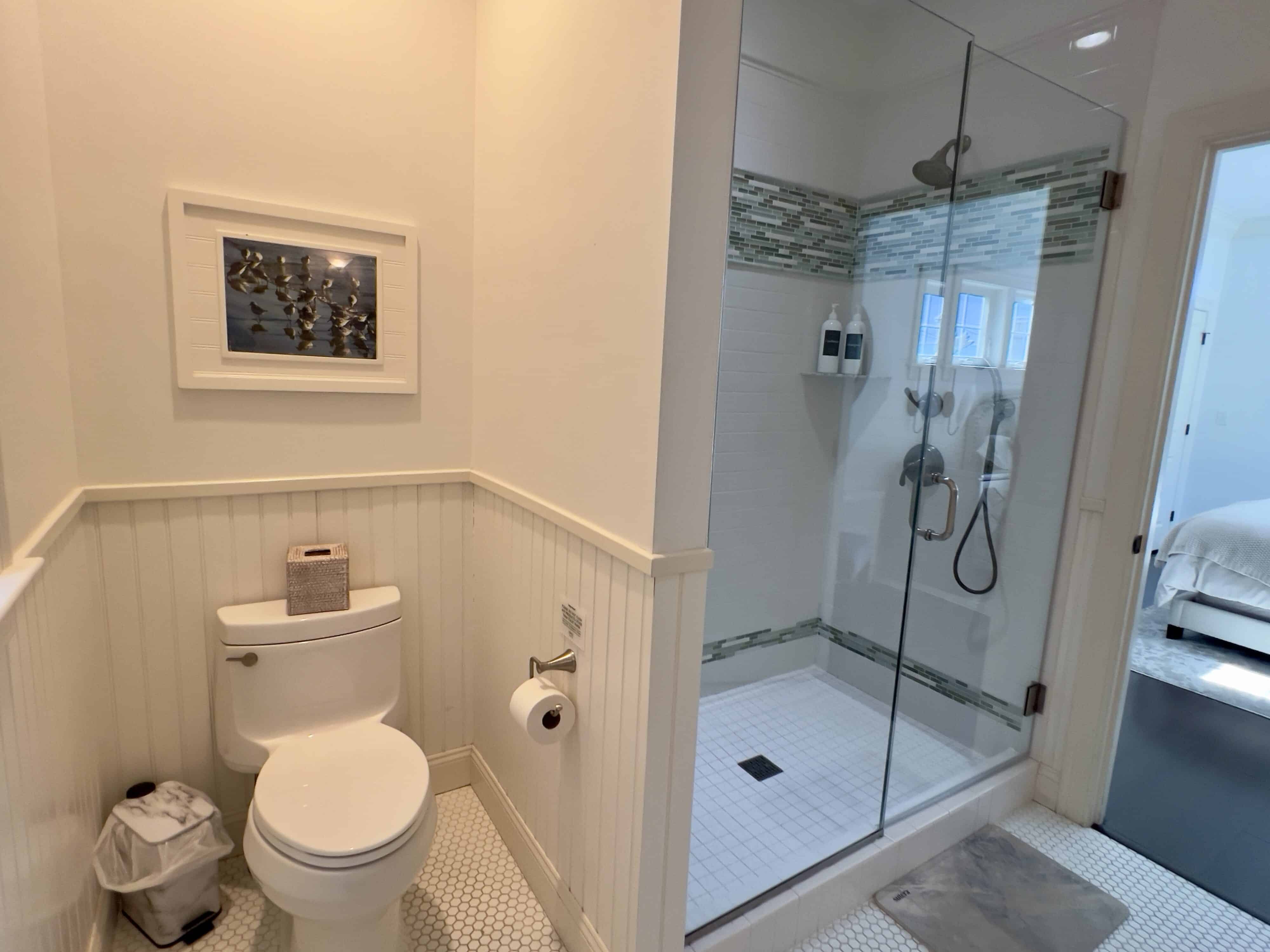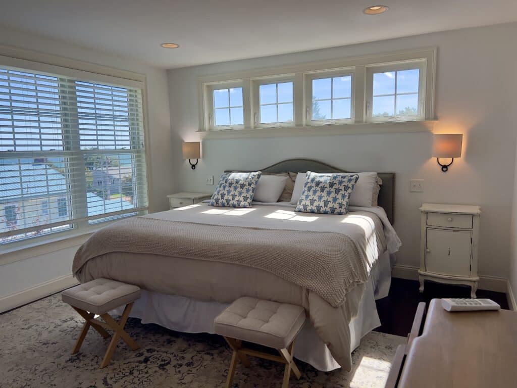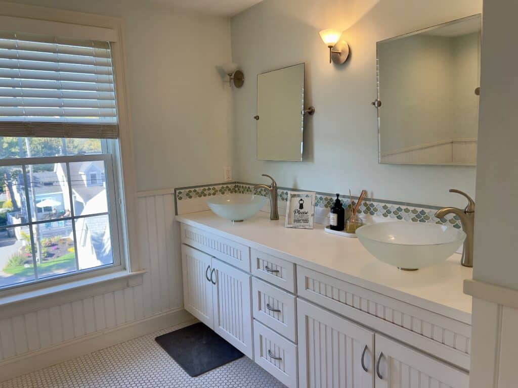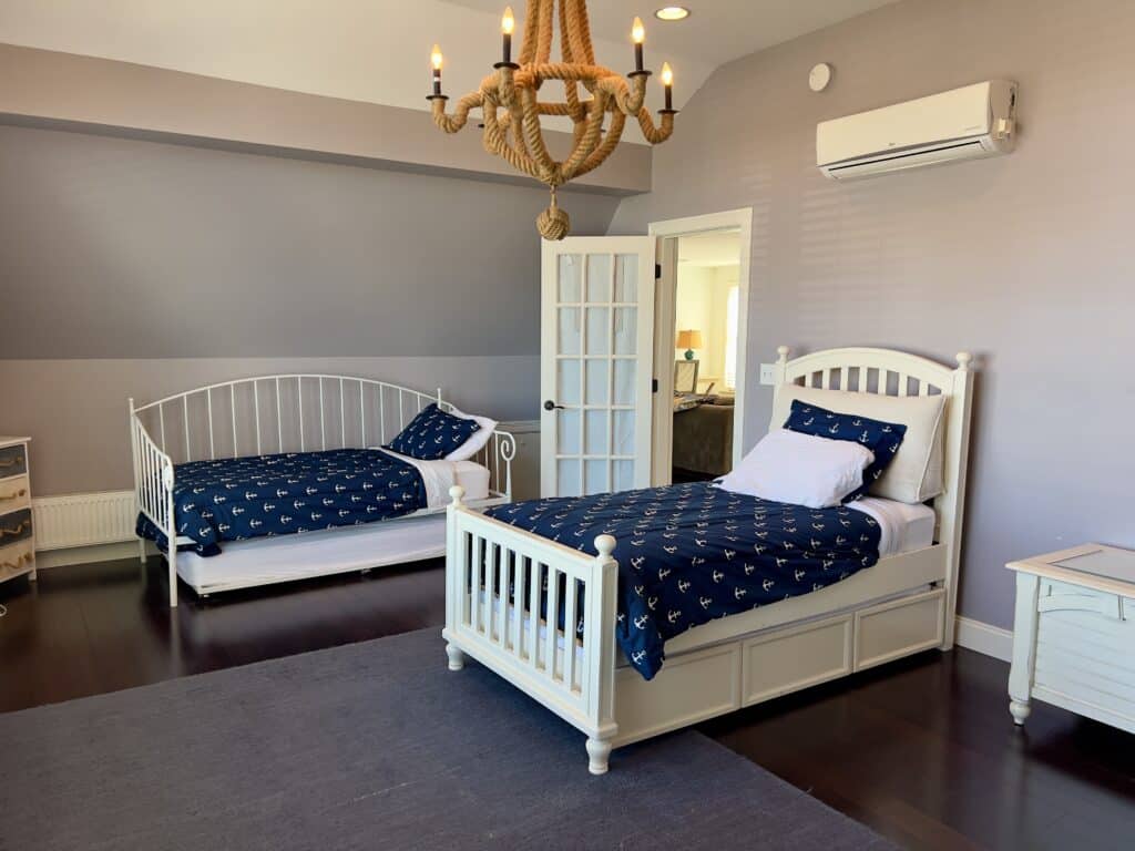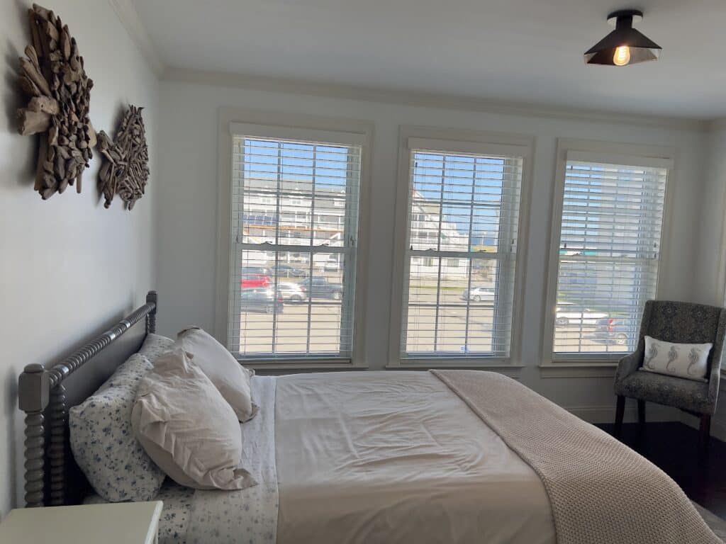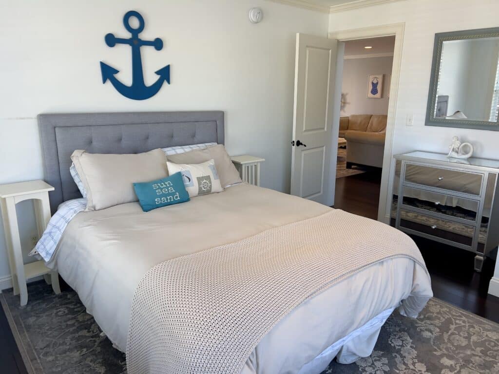 1 bedroom with ensuite bath is also located on the first floor – a favorite room for older adults who prefer not to climb the stairs. The king size memory foam mattress allows a restful night’s sleep, and lots of space to stretch out. The ensuite bath features a large shower and double sinks. An additional 1/2 bath completes the first floor of this Old Orchard Beach vacation home.