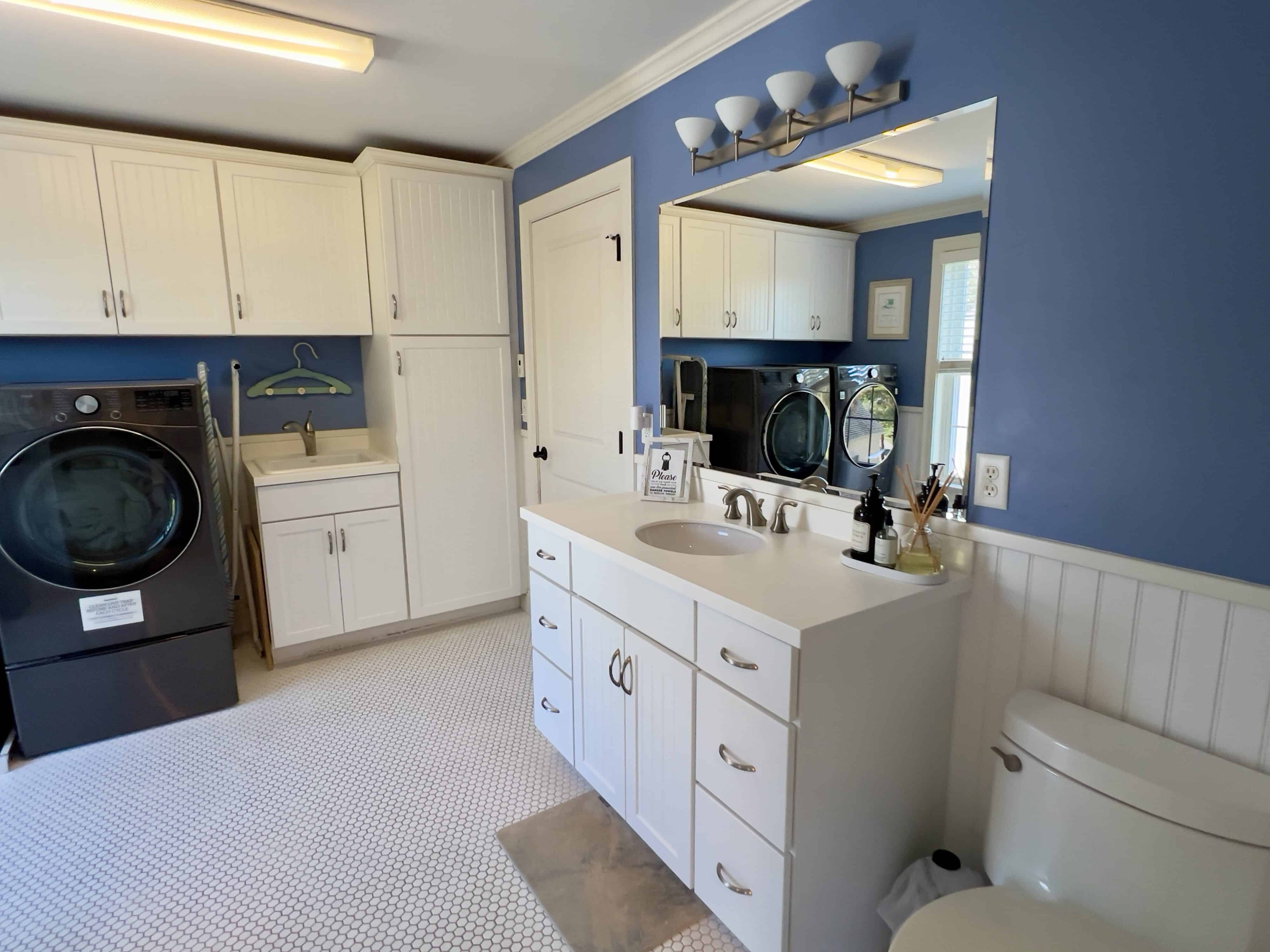 • Kitchen includes: dishware, silverware, glasses, mugs, pots & pans, Keurig coffee maker, dishwasher, toaster, ice maker, blender, kettle, and paper towels.
